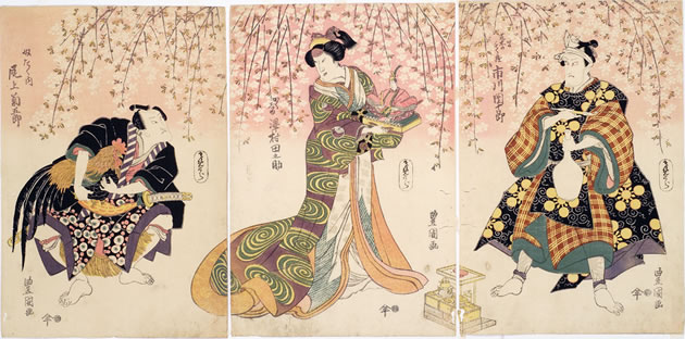 梅桜松双紙(うめさくらあいおいそうし) 大判錦絵2枚続き 歌川豊国 文化13年(1816)