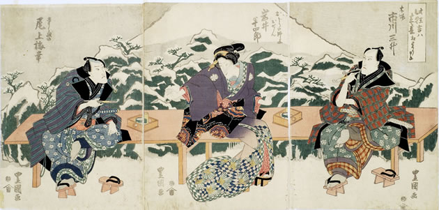 此狂言ハ来春相わかり申候 大判錦絵3枚続き 歌川豊国 文政5年(1822)