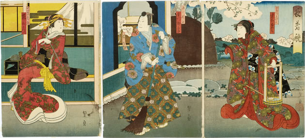 けいせい長者艦(ちょうじゃつりぶ)上摺 中判錦絵 歌川国員 安政4年(1857)正月