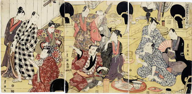 江戸芝居三階之図 大判錦絵3枚続き 歌川豊国 享和(1801〜1804)頃