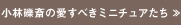 人は、昔からあらゆるものを元の大きさから縮小し、それを愛玩してきました。ミニチュアは、各時代・各地域で風俗や生活を鏡のように映し出し、人々の傍らで愛されてきましたが、特に日本人は、小さなものへの愛情と思い入れが強かったようで、さまざまなミニチュアが作られてきました。