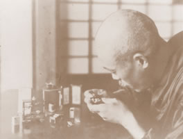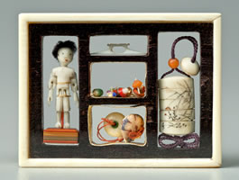 当館では、明治から戦前にかけて、驚くべきミニチュア作品を制作していた小林礫斎(れきさい)の人と作品に注目してきました。彼の作品は、素材に凝り、実物を忠実に極限まで小さくしていくことと、随所に仕掛けられた驚くべき仕掛けの存在に特徴があります。礫斎の作品は、単なる玩具の域を超え、特殊な形態の美術工芸品として位置づけられます。当館では1990年に開催した「小林礫斎の世界」以降、礫斎と彼のミニチュアに関する展示を開催し、旧中田実コレクション(礫斎作品を中心に極小工芸品を収集)を核として礫斎作品の収集などを行ってきました。
