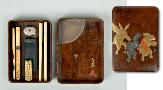 硯箱(兎蒔絵)桑 小林礫斎、春翠 4.13×2.91×0.81cm