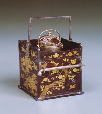 紫檀四君子に鳥木地蒔絵雛用手付きたばこ盆