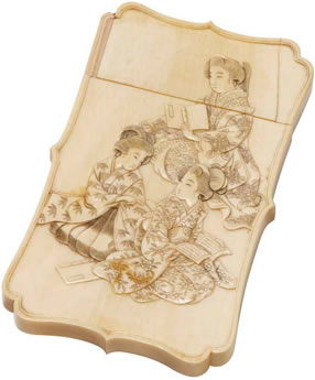 「輸出用象牙製人物図名札入れ」 明治時代