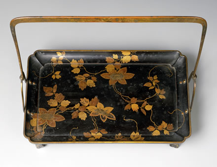 「梨子地波に葦蒔絵舟形たばこ盆」
