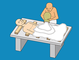 - 古代エジプトでは、亡くなった人の体をくさらせないように、ミイラにしていました。そのミイラづくりにも塩が使われていました。塩のはたらきで体から水が吸い出され、くさりにくくなるのです。