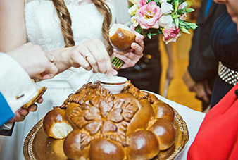 ロシアの結婚式では、おむこさんの母親がパンと塩をもって新しい夫婦を迎えて、おむこさんと花嫁さんはそのパンに塩をつけて食べる風習があるぞ。