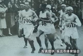 塩田で重い砂をならしたり集めたりするのは、たいへんな力仕事。この仕事で体をきたえ、オリンピックに出たマラソン選手もいたぞ。写真の一番後ろを走っているのは、1928年のアムステルダム・オリンピックに出た香川県坂出市の山田兼松選手だ。