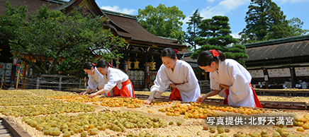 梅干しは昔、長生きのための薬とされていました。今でも、京都の北野天満宮では、神社のなかで取れた梅を塩づけにしたあとカラカラになるまで干し、健康や長寿を招く正月の縁起物として「大福梅」を授与しています。