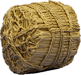 体積ではかっていた時代に使われた、塩俵という筒形の入れもの。大きさの同じ入れものに入れると、体積がわかりやすいぞ!