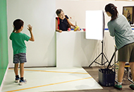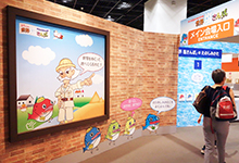 各コーナーで集めたクイズカードに答えて、3問連続で正解すると、世界各地の風景をバックに自分が写った、オリジナルの記念絵はがきを作ることができます。
