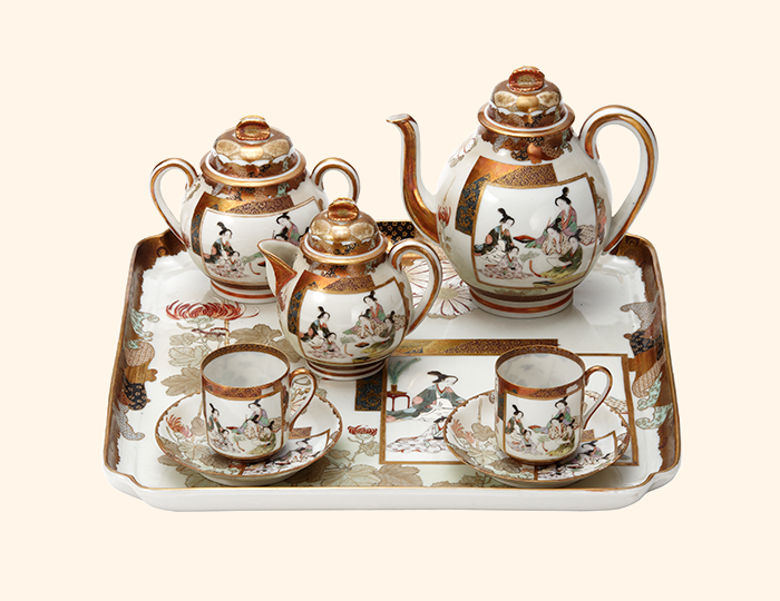 日本の有田焼(=伊万里焼)は、江戸時代、長崎を通してヨーロッパに輸出されていたが、幕末の慶応3(1867)年にはパリ万博に薩摩藩が出品した薩摩焼が高い評価を受け、以後、有田焼とともに輸出されるようになった。明治時代に入ると、陶磁器は茶や生糸と並ぶ外貨獲得の主力産業として、有田や九谷といった産地のほか、横浜や東京などの都市部でも大量に作られた。輸出向けのそれらは、西洋の広い室内空間に相応しい大形の花瓶やティーカップなどの洋食器で、意匠も彼らの嗜好に合わせた豪華絢爛なものが多かった。