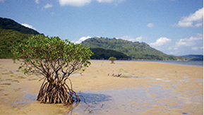 植物は海水で育てると枯(か)れてしまいます。しかし、海岸に生えるマングローブという木のなかまは平気です。ヤエヤマヒルギというマングローブは、根から入ってきた塩水を葉の中に集め、葉といっしょに塩をすてることができます。