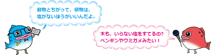 食べものといっしょに 塩が多すぎる海水も 飲む |