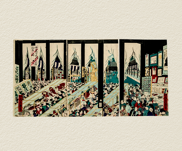 万国博覧会に先立つ1872(明治5)年には、湯島聖堂を会場とした文部省主催の博覧会が開催され、好評を博しました。