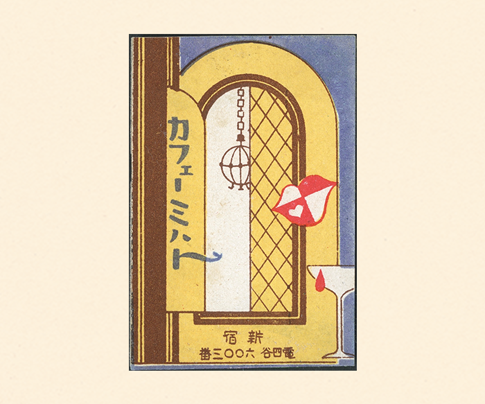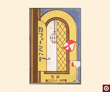 都市の大衆文化が花開いた1920年代後半より、カフェーやダンスホールなどの広告用マッチが数多く作られるようになります。アール・デコ調のデザインには当時の空気が感じられます。