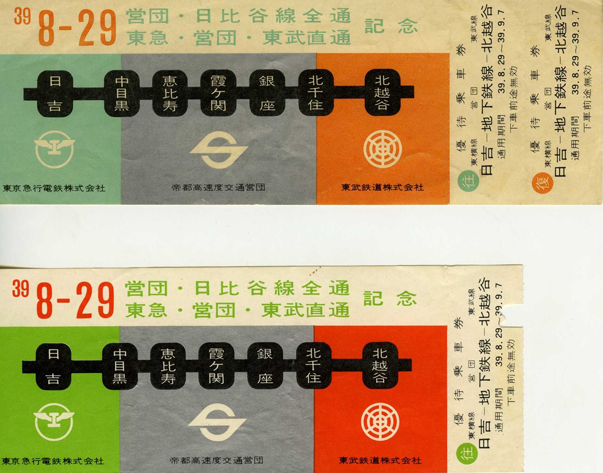 営団日比谷線全通記念 東急・営団・東武直通記念株主乗車券
