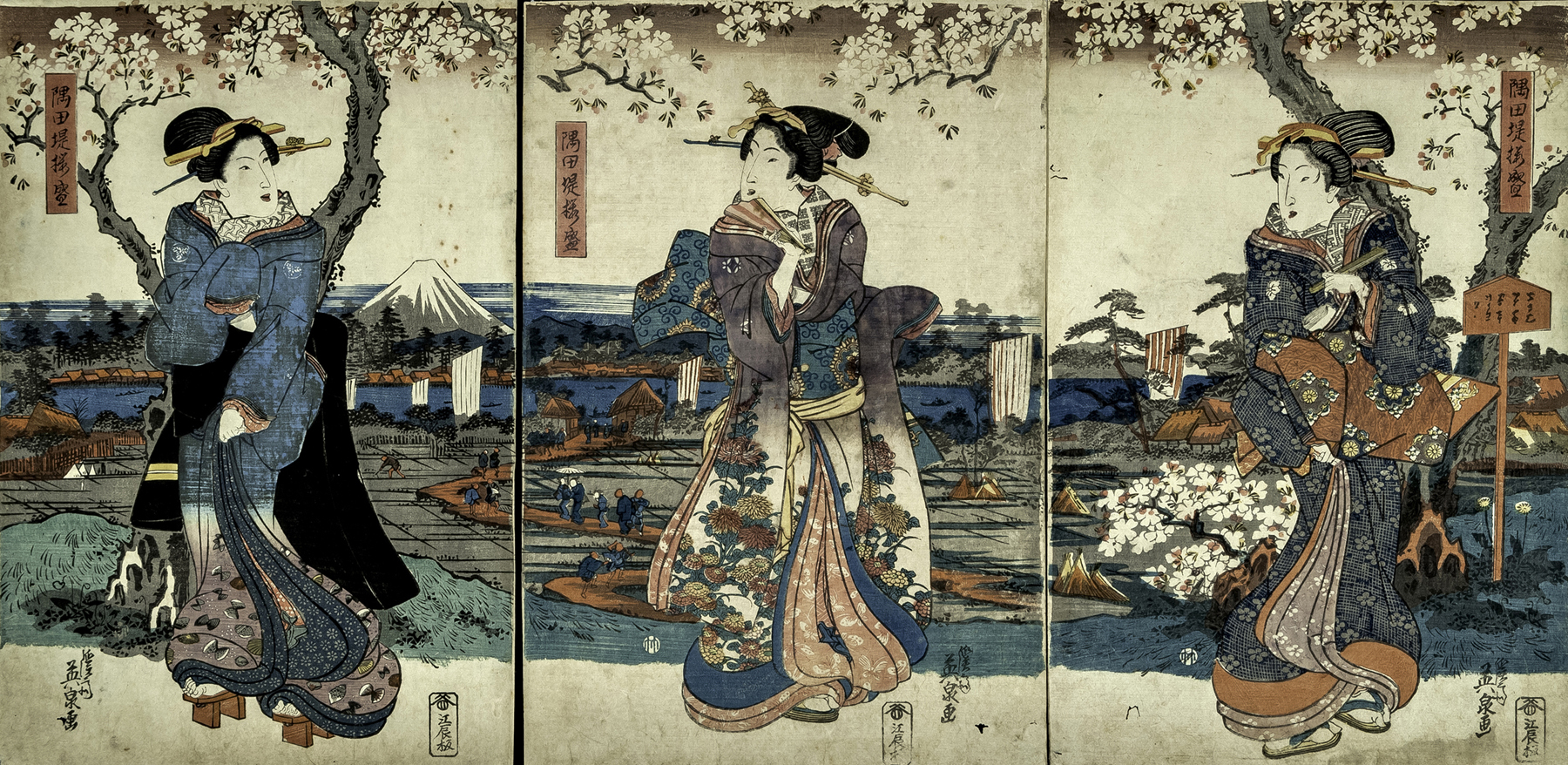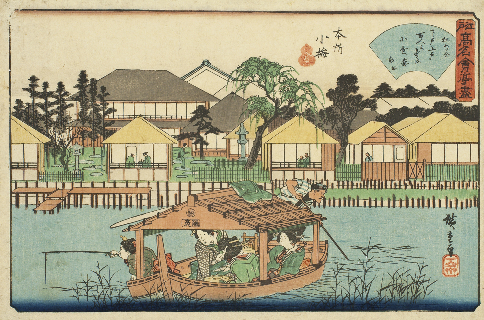江戸の人々にとって隅田川はとても馴染み深い川でした。周辺には浅草寺や木母寺をはじめとした由緒ある寺社が点在し、四季や自然の美しさを堪能できる名所もありました。向島一帯は船に乗れば江戸の中心から遠くなく、それでいてのどかな雰囲気も味わうことができ、格好の行楽地となっていました。