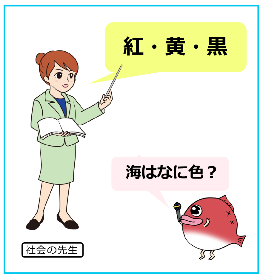 「海はなに⾊」か、ここでは理科の先⽣、社会の先⽣、クジラ、漁師さんの答えを聞いてみましょう。