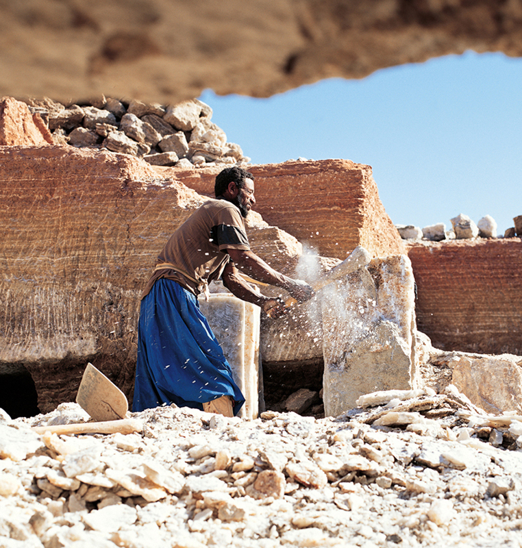 タウデニの岩塩を切り出し整形する