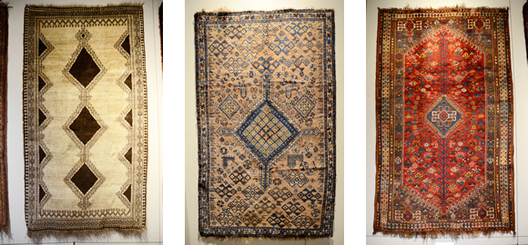 広報担当の好きな絨毯3点。最初は、左の作品のような、染料を使わない、原毛で織ったシンプルともいえる作品が好きでした。徐々に目が慣れてくると、色が入っているものが好きになってきました。そして、ここにきて目が慣れてきたのでしょうか。右の作品のような深い赤色の絨毯が一番のお気に入りになりました。この色味がなんだかしっくり馴染むようになってきたのです。みなさんもお気に入りの1点を探してみてはいかがでしょう。